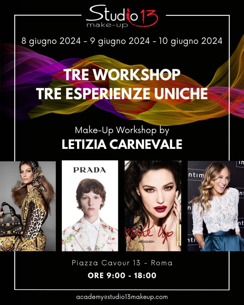 Partecipa al workshop di Make-up con Letizia Carnevale, rinomata truccatrice internazionale la quale ha lavorato con numerosi VIP tra cui, in modo ricorrente, con Monica Bellucci.